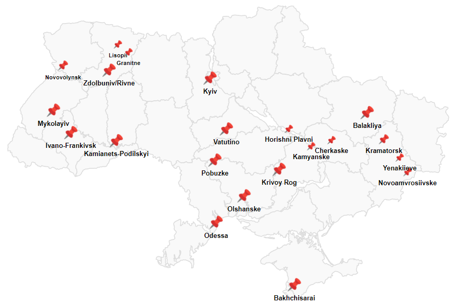 All production activities of Ukrcemremont Plus are associated with factories in different regions of Ukraine: Rivne, Kharkov, Donetsk, Nikolaev, Lvov, Kiev, Odessa, Dnepropetrovsk, Poltava, Ivano-Frankovsk regions. Also, our activity extends to neighboring countries: Moldova, Belarus, Russia (until 2014), Uzbekistan.