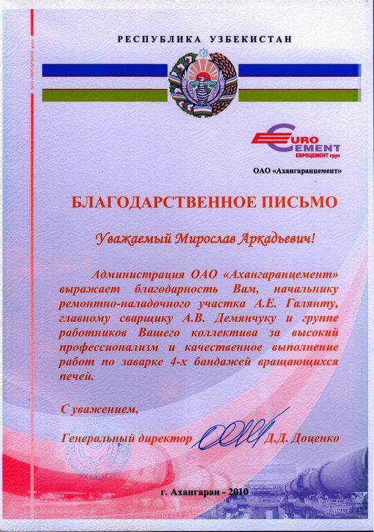 - Заміна корпусу обертової печі №1 (реконструкція з метою підвищення продуктивності – з ø3,6 на ø4,5 м)