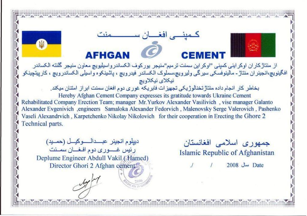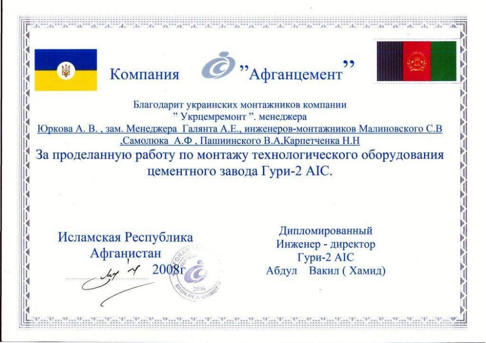 - Поточні послуги по ремонту устаткування та проведення пусконалагоджувальних робіт надаються з моменту введення в дію цементного заводу